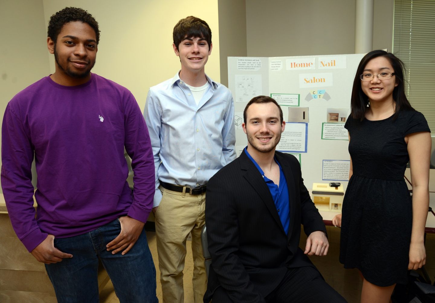 Freshmen complete a Student Design Showcase Project as part of this course.  The Spring 2015 problem statement was “Design a product or device that will enable a person to perform a task with one hand that would normally require two hands.”  Complete Photo Album